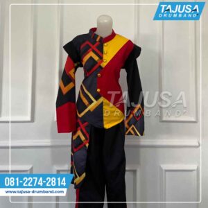 2. Baju Marchingband Merah Kuning Hitam Desain Geometris Modern