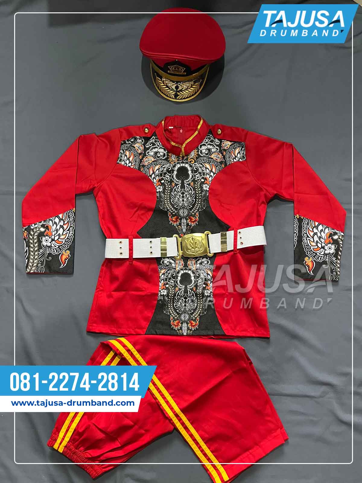 Baju ini merupakan kostum Paskibra dengan sentuhan khas budaya Nusantara yang kuat. Perpaduan antara gaya militer dan motif batik memberikan tampilan yang gagah namun tetap menonjolkan identitas budaya Indonesia.