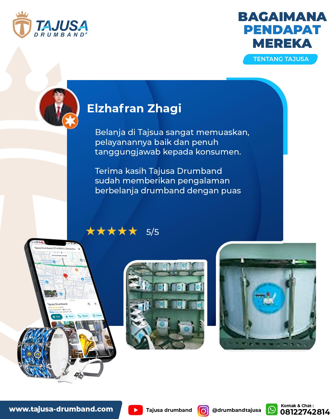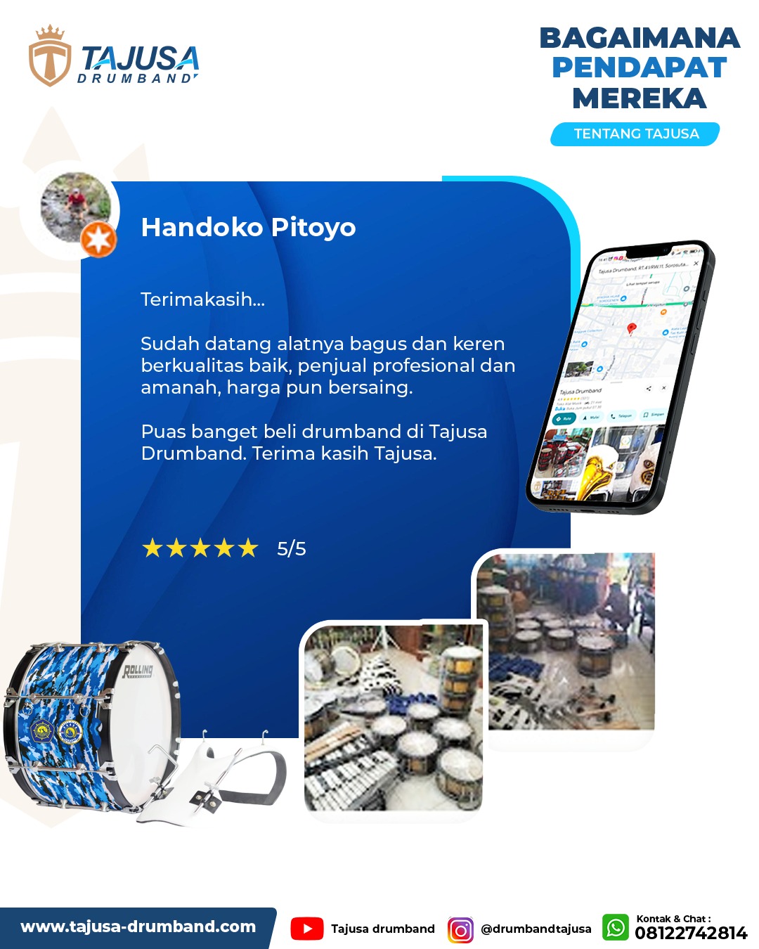 Pembuatan pakaian pasukan dan mayoret perlu melalui jasa profesional seperti Tajusa Drumband. Membuat di tempat yang kurang berpengalaman bisa berisiko hasil yang kurang memuaskan. Jasa profesional seperti kami untuk produksi perlengkapan drumband memiliki peralatan lengkap dan tenaga ahli. Memesan di tempat profesional juga bisa menjamin hasil yang lebih baik.