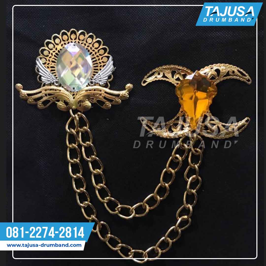 Aksesori: Topi pet hitam dengan lis emas, selempang silver untuk nuansa parade.
