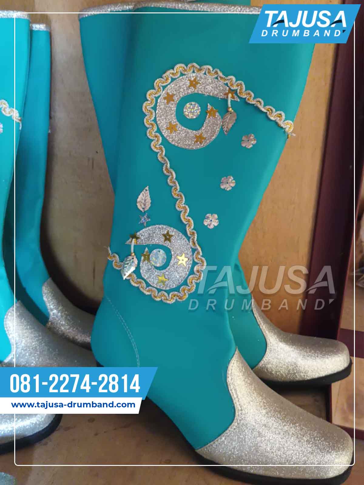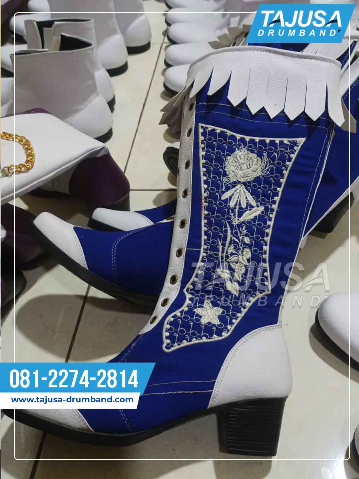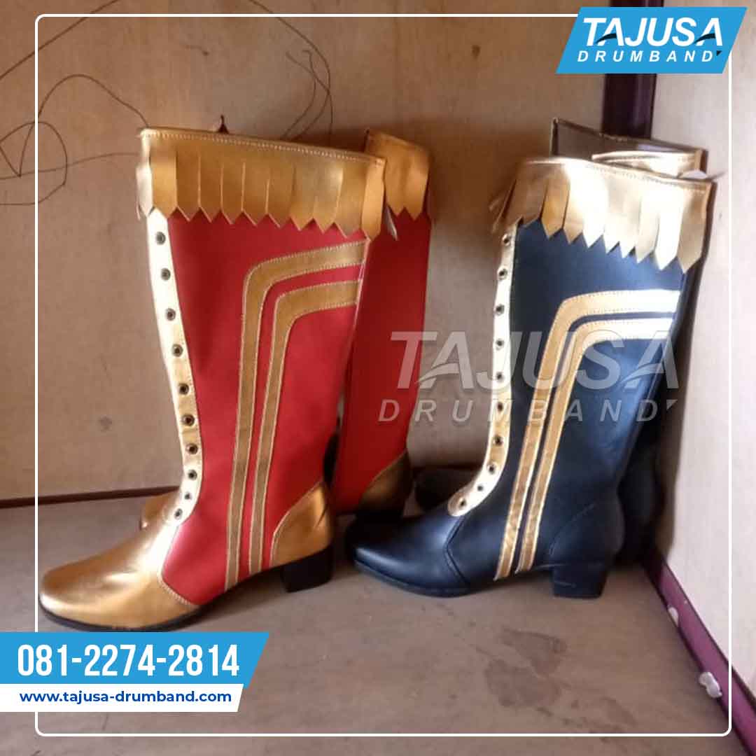 Model high boots adalah favorit untuk penampilan yang lebih mencolok. Contoh contoh sepatu mayoret ini memiliki potongan tinggi hingga lutut, memberikan kesan anggun sekaligus tangguh. Tajusa Drumband menghadirkan model ini dengan detail tambahan seperti tali depan atau aksen logam.