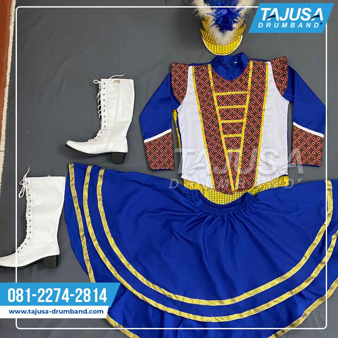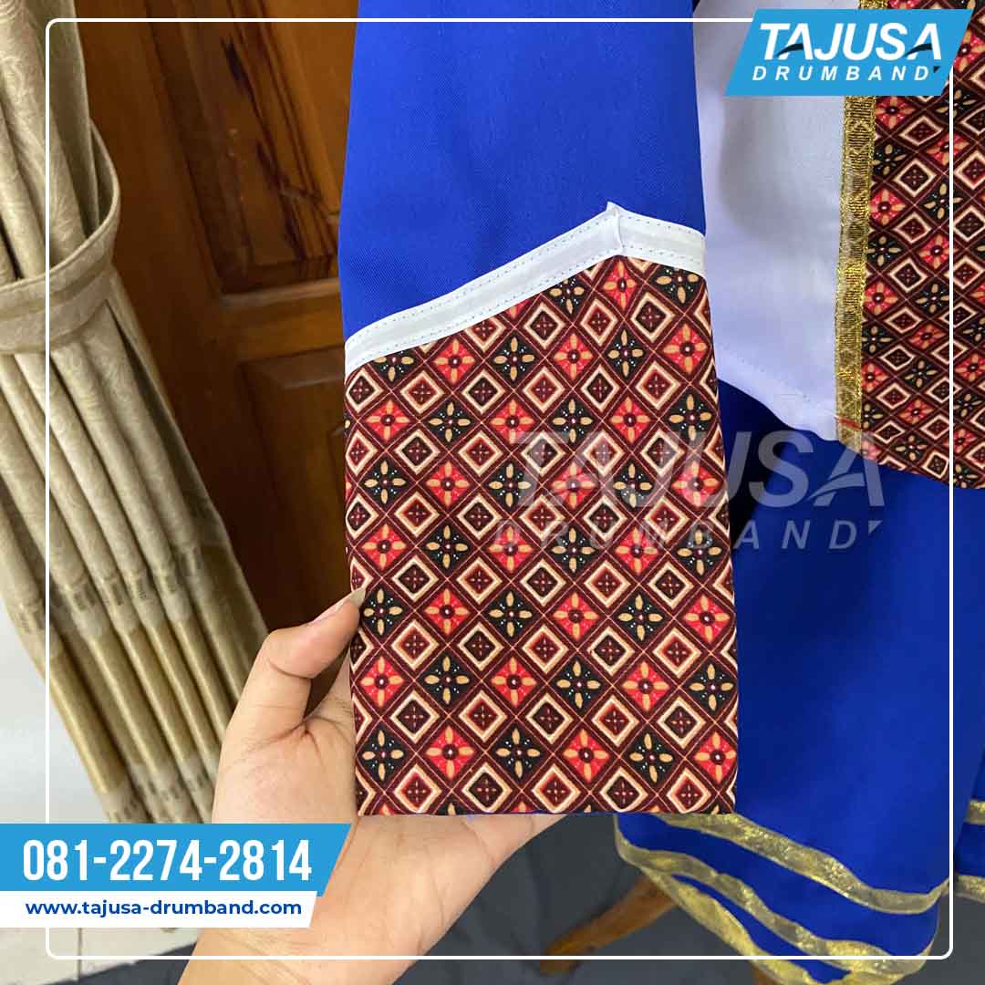 Kostum Drumband Motif Etnik Modern dengan Nuansa Biru Elegan
