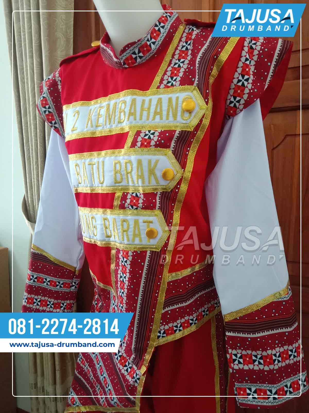 Seragam Drumband Merah Batik Asimetris dengan Sentuhan Emas