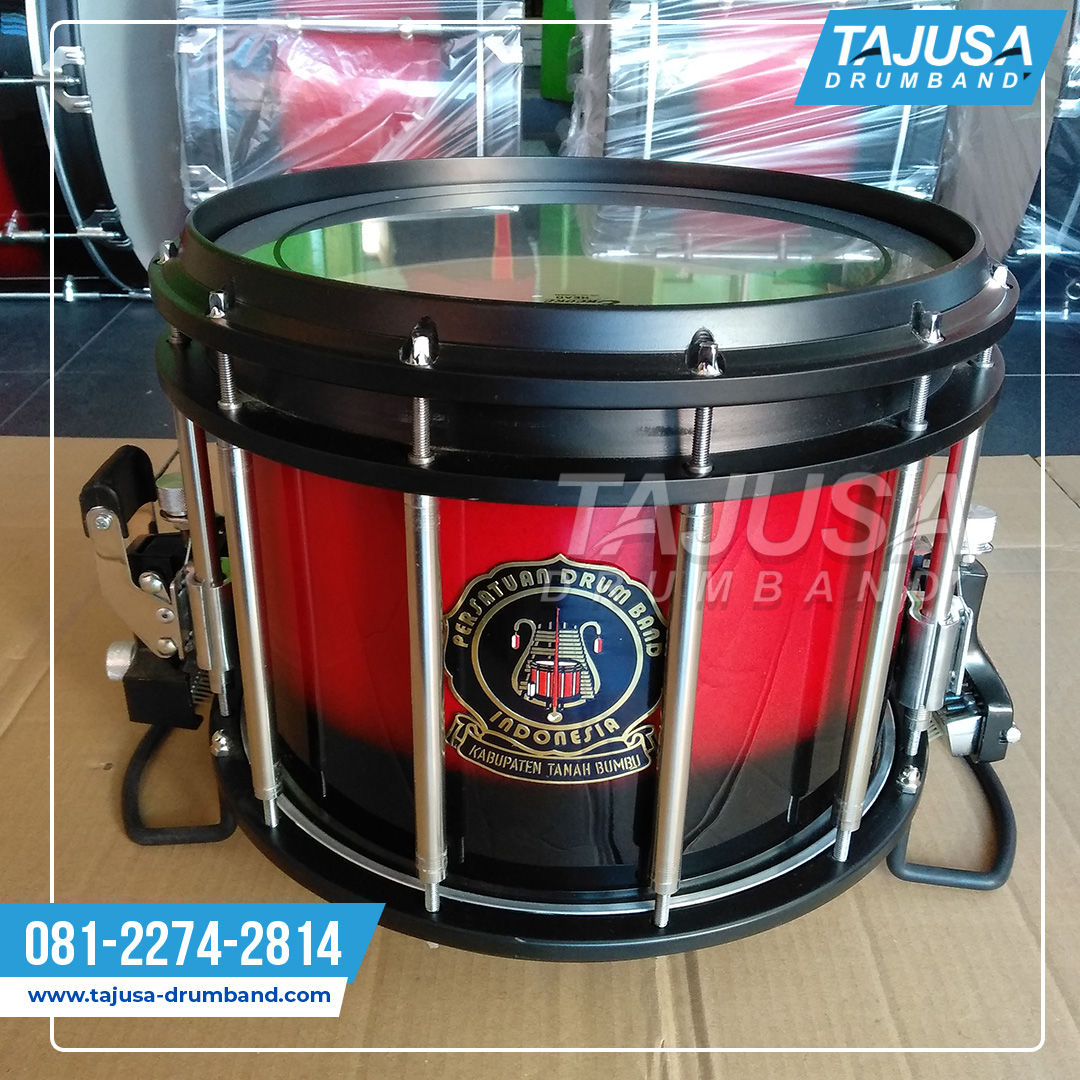Snare Drum – Alat pukul utama dengan ukuran 10″, 12″, 13″, atau 14″. Suaranya tajam dan ritmis, menjadi penentu ketukan utama.