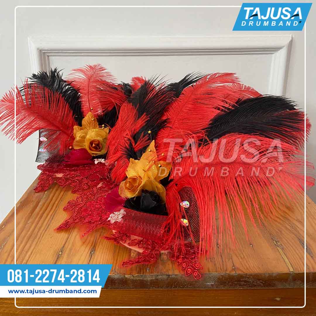Pengrajin menggunakan bahan ringan seperti kain tulle, bulu sintetis, dan bunga buatan agar headpiece drumband nyaman dipakai saat tampil. Bahan-bahan ini memungkinkan color guard bergerak bebas dan tetap tampil rapi sepanjang pertunjukan. Struktur headpiece yang kokoh membuatnya tidak mudah bergeser meskipun dipakai dalam formasi dinamis. Dengan rancangan yang tepat, aksesori ini mendukung performa tanpa mengurangi keindahan gerak.