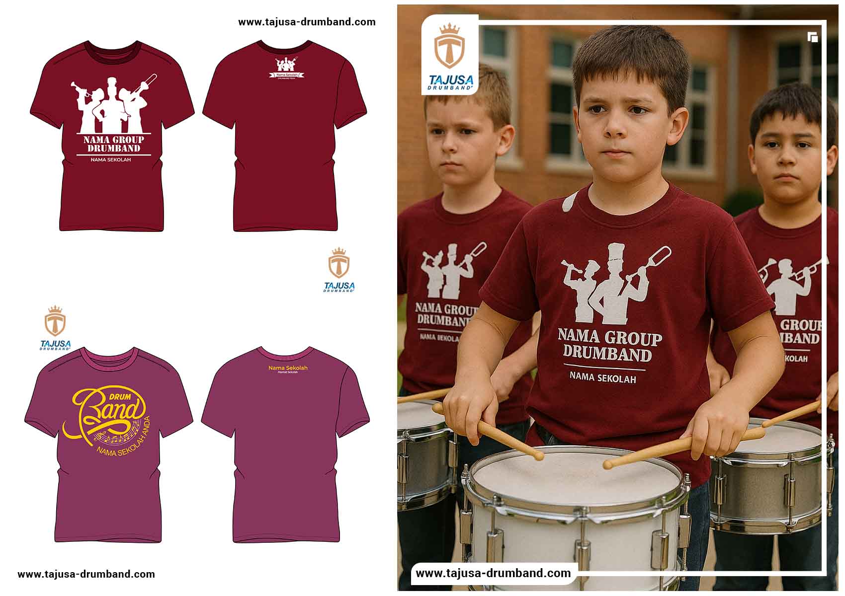 - Kaos yang bercirikan dunia drumband juga memiliki model yang sangat update, dan cukup mudah memperoleh penerimaan masyarakat.
