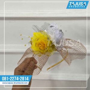Kostum CG kuning lemon putih tidak lengkap tanpa headpiece atau topi berwarna senada. Biasanya, hiasan bulu kuning cerah menjulang tinggi di bagian atas, menambah kesan megah dan elegan. Aksesori ini juga memperkuat identitas visual tim, sehingga mereka mudah dikenali saat tampil di parade maupun lomba.