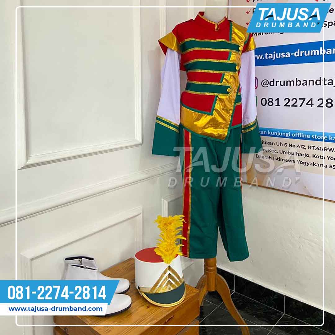 Dalam setiap pertunjukan drumband, kostum memainkan peran penting dalam menciptakan kesan pertama bagi penonton. Lebih dari sekadar seragam, kostum mencerminkan semangat, identitas, dan kekompakan tim. Selain itu, perpaduan warna yang cerah dan desain yang berani menyalurkan energi positif serta memperkuat daya tarik visual di lapangan. Salah satu contoh terbaik terlihat pada kostum mayoret dan pasukan drumband dengan kreasi kostum drumband penuh warna hijau, merah, dan emas yang tampak cerah dan harmonis.