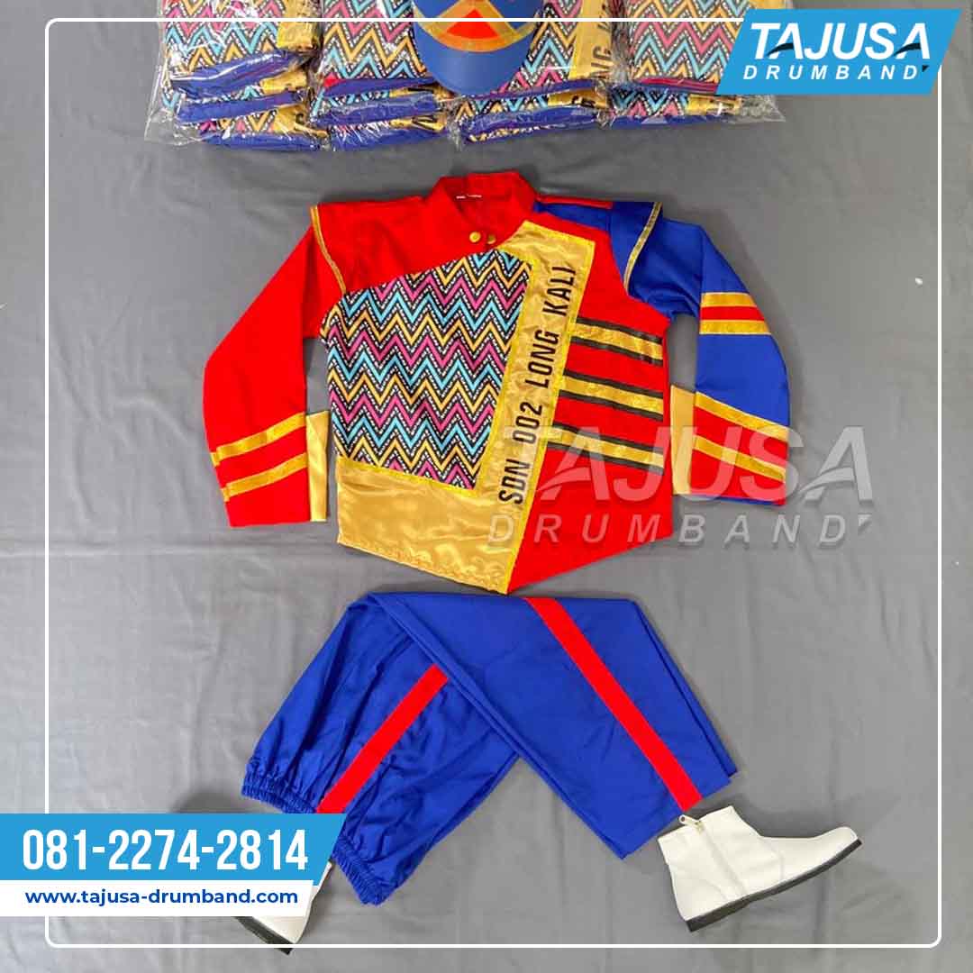 Kostum drumband tidak hanya berfungsi sebagai pakaian pertunjukan, tetapi juga menjadi simbol kebersamaan dan kerja keras. Merah mengobarkan semangat, biru menenangkan langkah, dan emas memancarkan kejayaan.