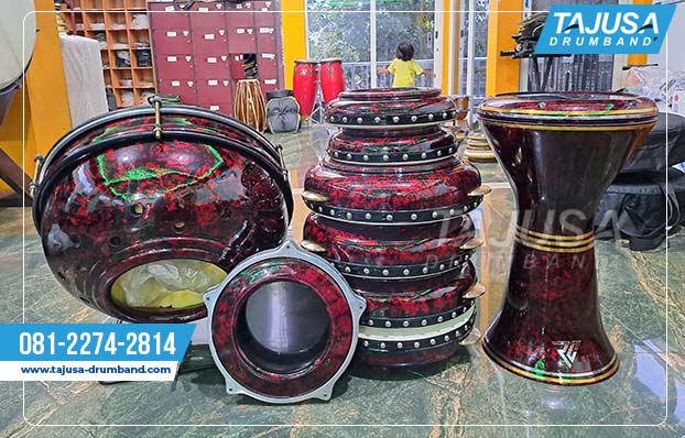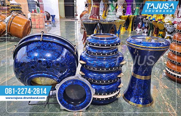 Anda bisa mendapatkan satu set rebana seperti di atas jika memesannya di Tajua Drumband. Dengan bahan material terbaik, sudah pasti akan menghasilkan irama indah ketika Anda memainkannya.
