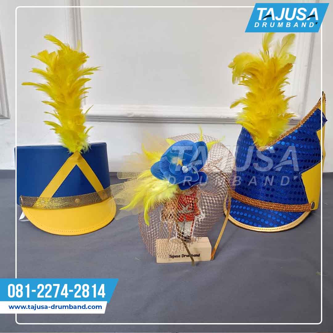 Dengan sentuhan dekoratif yang elegan dan detail yang rapi, headpiece ini menghadirkan nuansa profesional sekaligus artistik — menjadikannya pilihan ideal untuk menonjolkan karakter dan daya tarik penampilan drumband sekolah maupun instansi.