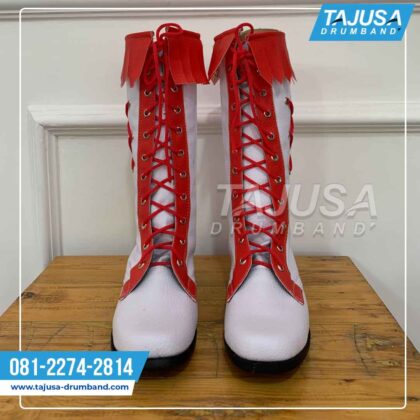 Sepatu mayoret ini mengusung desain klasik yang berpadu dengan nuansa modern. Kombinasi warna merah dan putih memberikan kesan tegas, berani, dan elegan, cocok untuk menonjolkan penampilan mayoret dalam parade drumband atau marching band.