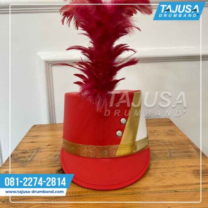 Dibuat dari bahan yang kuat namun tetap ringan, topi ini nyaman digunakan dalam waktu lama. Rangka bagian dalamnya kokoh untuk menjaga bentuk tetap tegak, sementara lapisan luar dijahit rapi agar tahan lama dan tidak mudah kusut. Desainnya cocok dipadukan dengan berbagai warna seragam drumband, terutama kombinasi merah–putih–kuning yang melambangkan keceriaan dan semangat kebersamaan.