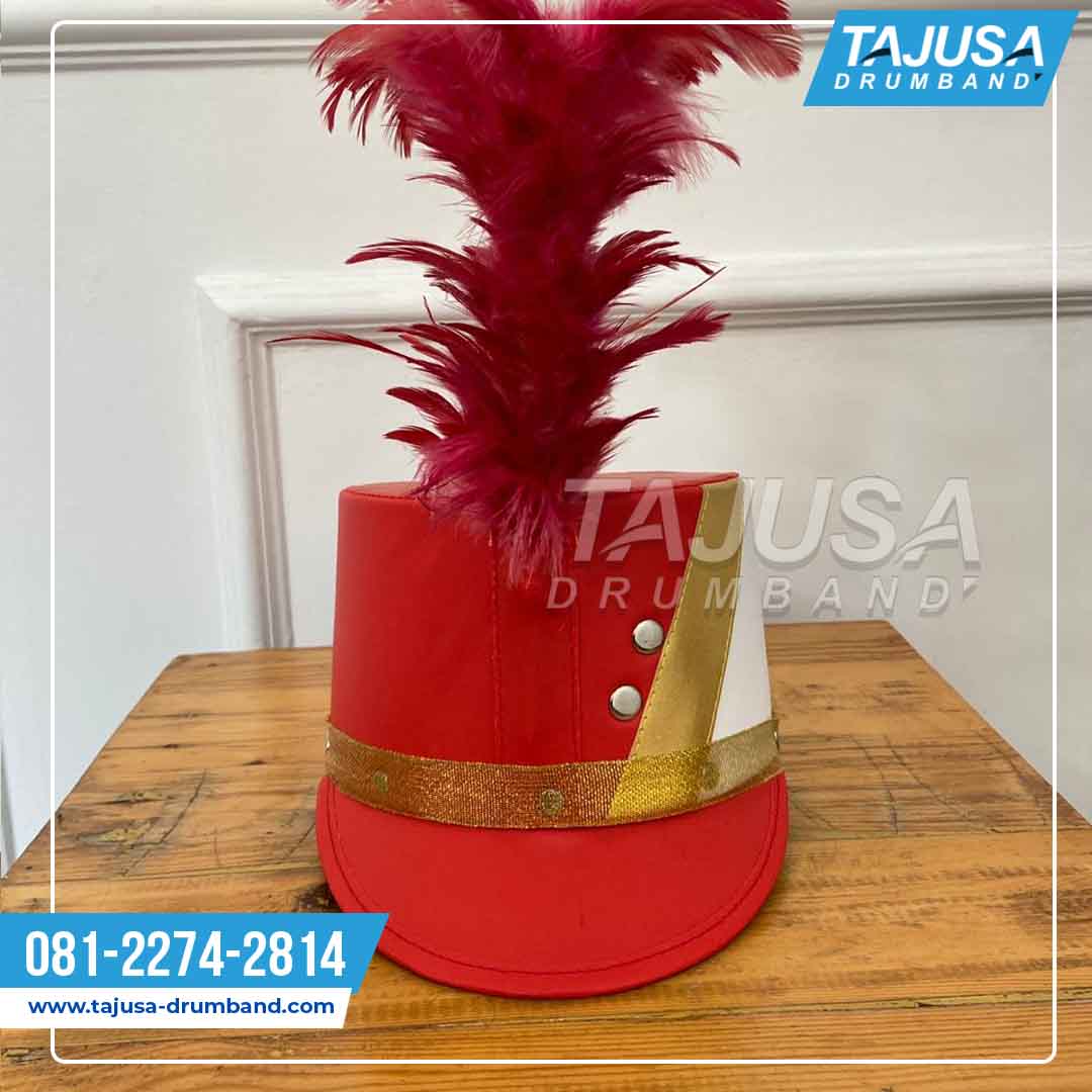 Topi ini menjadi pelengkap penting dalam satu set kostum drumband, karena menegaskan identitas kelompok dan menambah kesan profesional serta kompak. Dengan desain yang berani dan detail yang menarik, topi drumband merah putih emas ini mampu menghadirkan tampilan penuh percaya diri di setiap parade dan pertunjukan.