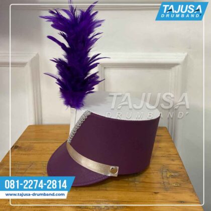 Topi drumband dengan kombinasi warna ungu dan putih yang elegan. Dilengkapi bulu ungu menjulang yang memberi kesan anggun sekaligus tegas di atas panggung. Dibuat dari bahan berkualitas dengan bentuk kokoh sehingga nyaman dipakai dalam waktu lama. Warna ungu melambangkan wibawa dan kreativitas, dipadukan dengan putih yang memberikan kesan bersih serta profesional. Pilihan sempurna untuk memperkuat identitas tim drumband agar tampil lebih berkarakter dan menawan.