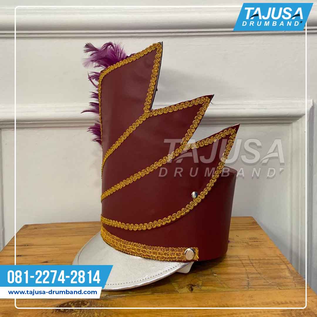 Dengan bentuk kokoh dan detail artistik, topi ini tidak hanya menonjol dalam tampilan, tetapi juga melambangkan semangat, kebanggaan, dan kekompakan dalam setiap penampilan pasukan drumband.