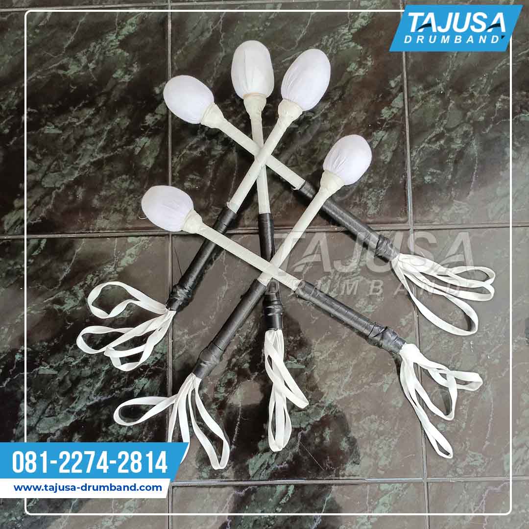 Stik yang terbuat dari kayu, steinless atau alumunium, ( untuk drumband menggunakan kayu untuk marchingband menggunakan steinless ) Bentuk ujung stik menggunakan spon tebal , untuk diameter kurang lebih 3 cm