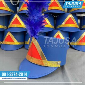 Potongan atasan yang simetris menjaga barisan tetap rapi. Topi khas drumband dengan bulu biru memperkuat kesan gagah. Setiap anggota terlihat selaras meski mengenakan potongan kostum yang berbeda.