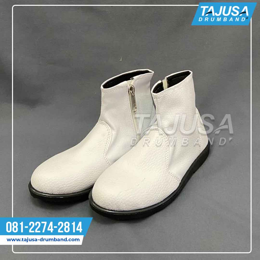 Topi mayoret lebih tinggi dari topi pasukan. Bulu biru yang menjulang mempertegas posisinya di depan barisan. Sepatu boots tinggi dengan rantai emas memberikan kesan anggun sekaligus tegas. Mayoret tampil percaya diri saat memimpin pasukan.